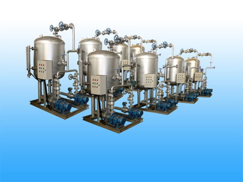 冷凝水是高質量的水,而且它含有大量的熱量,所以在蒸汽供熱系統(tǒng)中回收冷凝水是節(jié)能水的重要措施之一。高溫水如果直接用泵抽送,泵前形成的負壓會使冷凝水汽化,造成氣蝕,嚴重時會由于氣體體積膨脹而發(fā)生爆裂,損壞水泵。所以傳統(tǒng)冷凝水回收發(fā)放是將其冷卻降溫后再用泵抽送。這樣就無法利用冷凝水所含有的大量熱能,而且由于冷凝水滲入了未經(jīng)處理的冷水,使水質惡化,還要重新進行處理。不但浪費了能源,還增加了入場用水量及水處理費用。冷凝水回收器設計了氣蝕消除措施,能確保水泵直接抽送高溫冷凝水而不發(fā)生氣蝕現(xiàn)象。冷凝水回收可廣泛用于化工、輕工、食品、紡織、橡膠、冶金、電力、機械等工業(yè)及餐飲、醫(yī)院、商場、旅館、辦公樓、民用建筑等所有使用蒸汽作為生產(chǎn)、采暖、空調、生活熱水等熱源的系統(tǒng)。